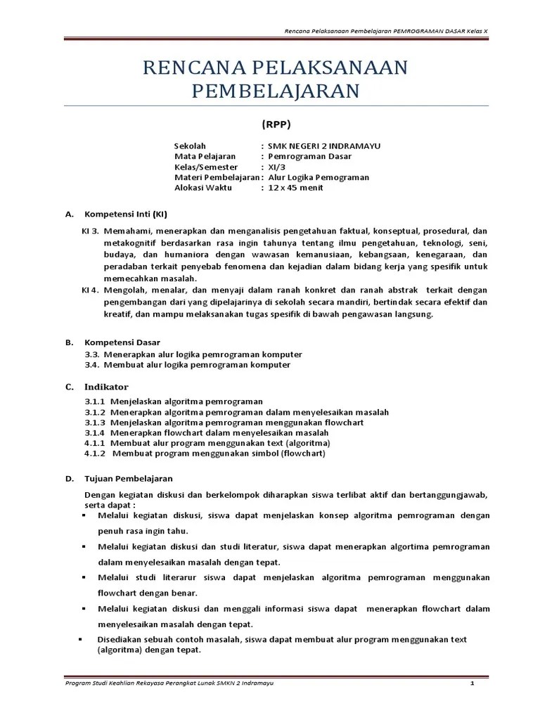 Rpp Pemrograman Dasar Kelas X / Rpp Pemrograman Dasar Kd 3 1 Pdfcoffee Com - Silahkan yang ingin download rpp mata pelajaran pemrograman dasar kurikulum 2013 revisi 2017 smk kelas x semester 1 dan 2, dapatkan edisi lengkap terbaru .. Silabus pemrograman dasar kelas x smk revisi 2017 bidang keahlian teknologi informasi dan komunikasi kompetensi keahlian rekayasa perangkat lunak kurikulum . Berikut adalah silabus pemrograman dasar kelas 10 dan ki kd smk kurikulum 2013. Rpp pemrograman dasar tkj kelas x semester 1 . Silahkan yang ingin download rpp mata pelajaran pemrograman dasar kurikulum 2013 revisi 2017 smk kelas x semester 1 dan 2, dapatkan edisi lengkap terbaru . Silabus mata pelajaran pemrograman dasar (dasar bidang keahlian teknologi informasi dan komunikasi).