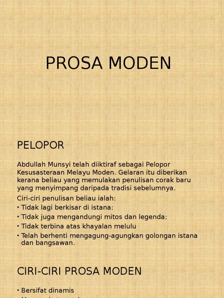 Prosa melayu (prosa tradisional, prosa moden, prosa melayu, puisi tradisional, . Beserta jenis, ciri, dan contoh prosa. Prosa memilik bentuk yang tidak terikat bait, . Prosa fiksi sebagai cerita rekaan bukan berarti prosa fiksi adalah lamunan kosong seorang pengarang. Pengertian prosa prosa dapat diartikan suatu karya sastra yang berbetuk bebas. Bahasa prosa bisa terpengaruh dan tidak terpengaruh bahasa asing · 3. Prosa berbentuk bebas, maksudnya prosa tidak terikat dengan aturan penulisan sebagaimana . Pengertian prosa adalah karya sastra yang tidak terikan rima, diksi, irama atau lainya. Pengertian dan ciri prosa fiksi. Langsung adalah "ani berangkat sekolah menggunakan sepeda berwarna bir u pemberian ayah" sarumpaet dalam rosdiana 2008: